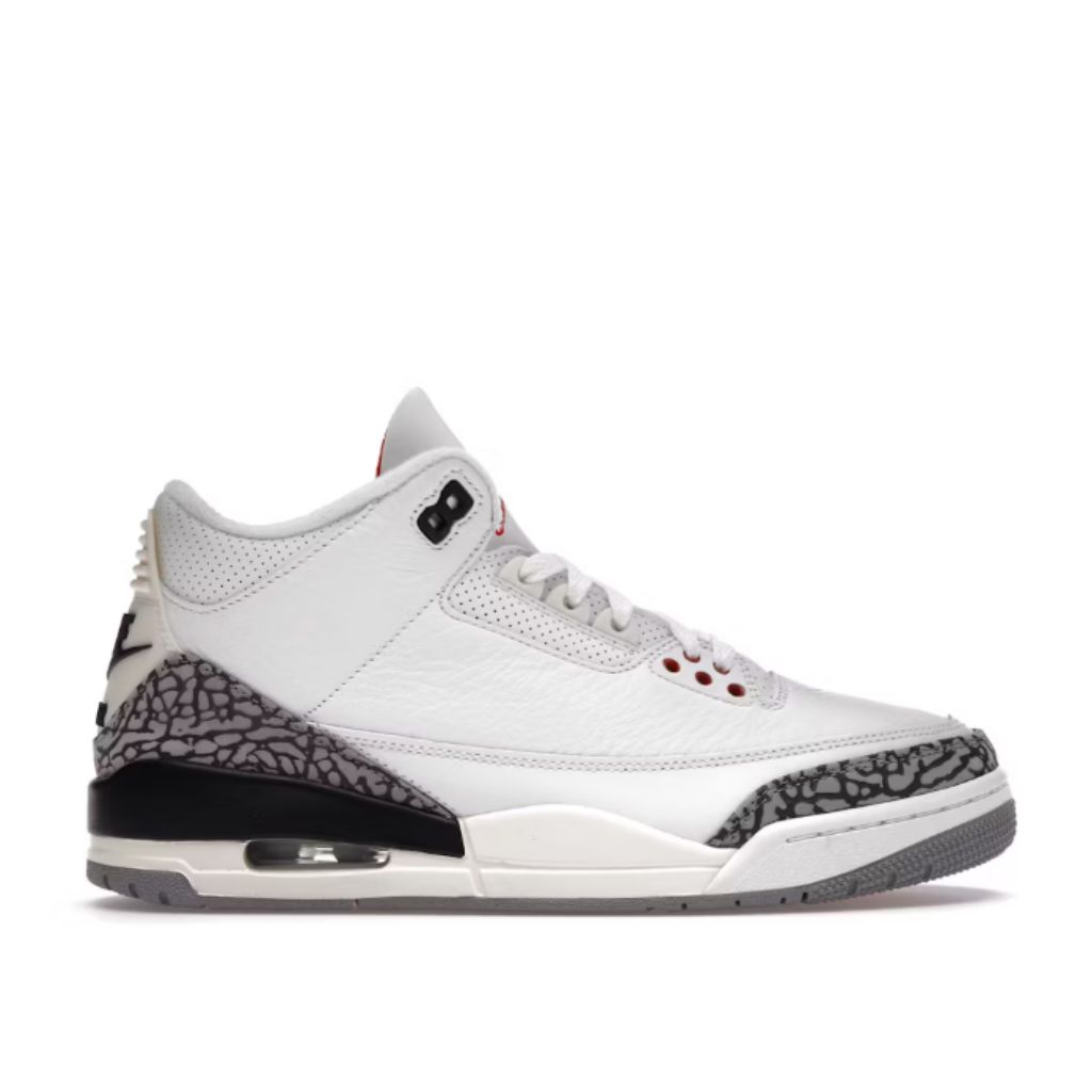 Jordan ha utilizado el mismo diseño y especificaciones que en la silueta Jordan 3 original de 1988 para crear el segundo modelo de la serie Reimagined. Los Air Jordan 3 Retro en blanco y gris hormigón están confeccionados con una parte superior de piel blanca y con la entresuela y las lengüetas del talón en blanco roto, lo que ayuda a dar a los sneakers un aire vintage.